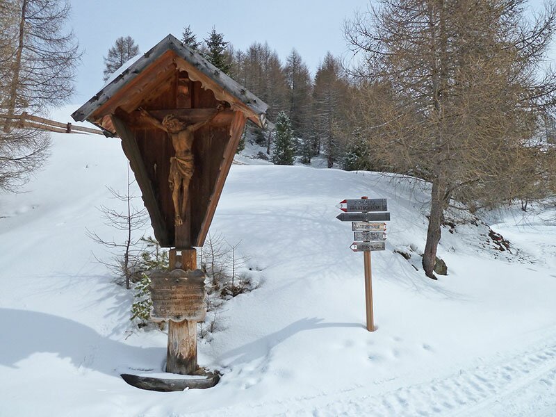 Il tragitto appena fatto conta un dislivello di 570 m. Torniamo sullo stesso percorso dell'andata, ovviamente in discesa. Portando con sé la slitta è possibile scendere lungo la pista per slittini. Avviso: i dati indicati si riferiscono all'intero percorso, andata e ritorno compreso, a piedi.